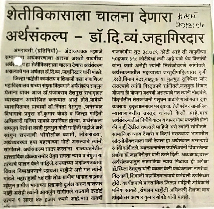 State level seminar on “Mahatma Gandhi YancheAarthikVicahr” 24 Jan.2019
