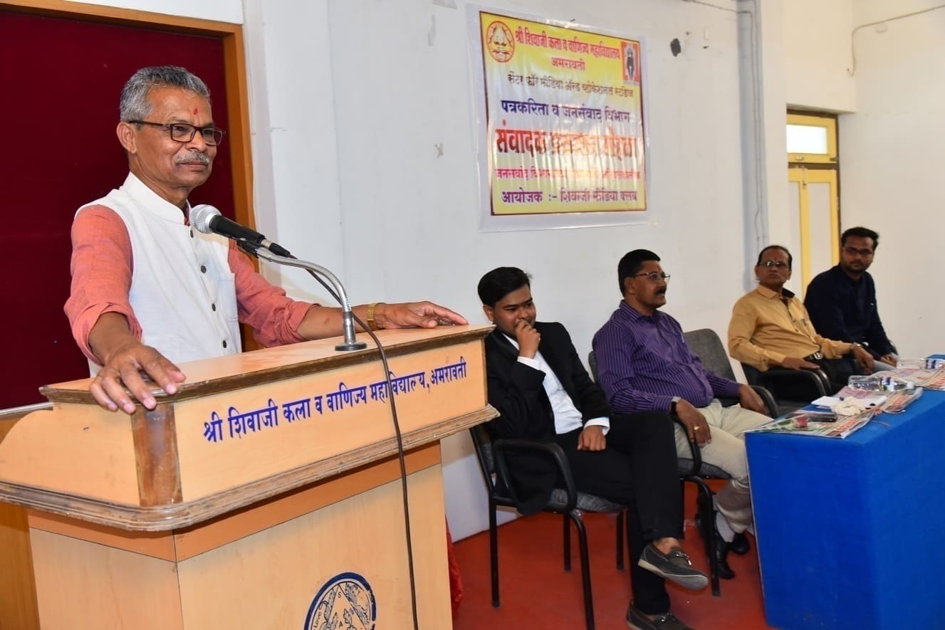 Senior journalist Uttamrao kamble, editor of Sakal news paper addressing to students of mass communication & journalism during the annual publication Sanvadak, produced by the department of mass communication students. (Year 2019)