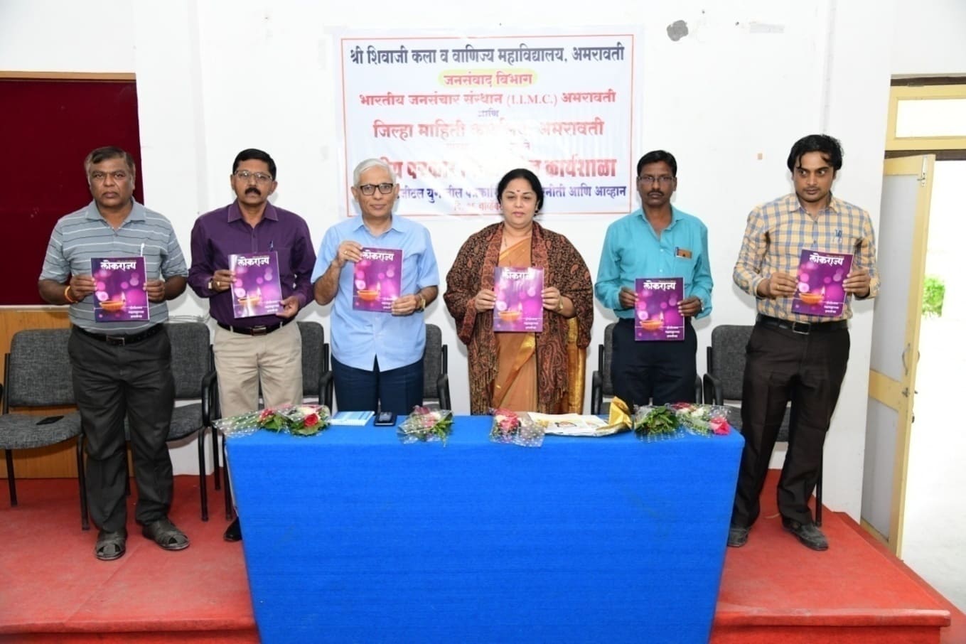 Regional Information Deputy Director Mr. Radhakrishna Muli ,District Information Officer Mr. Harshavardhan Pawar during the LOKRAJYA publication.